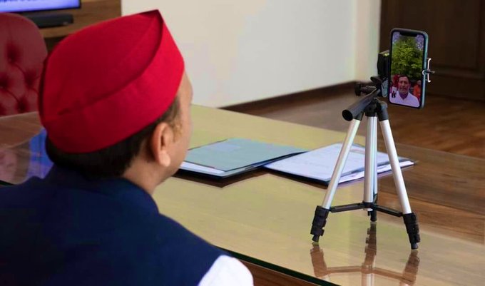 अखिलेश यादव कि वीडियोंकाॅलिंग के माध्यम से नेताओं और कार्यकर्ताओं से हुई बात