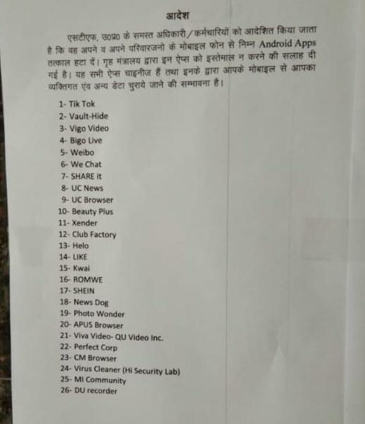 इसमें 52 चाइनीज ऐप की लिस्ट भी लगाई गई है। पत्र में आदेश दिया गया है कि