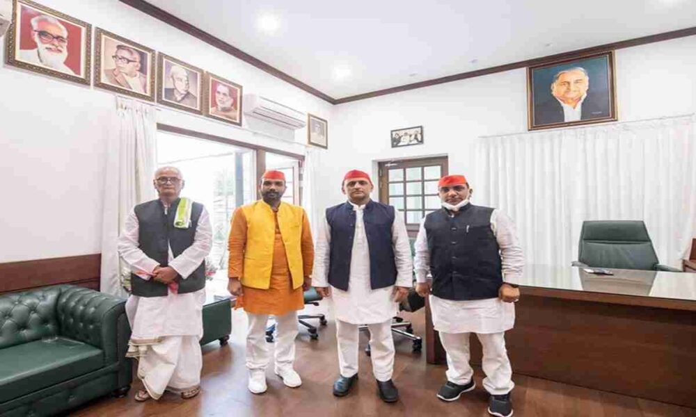 समाजवादी पार्टी में अन्जान आदमी पार्टी का विलय अखिलेश यादव ने पहनाई लाल टोपी