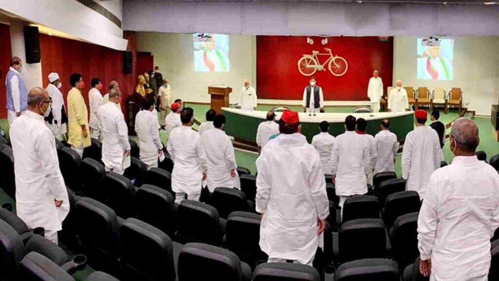 लखनऊ :- समाजवादी पार्टी के विधानमंडल दल की बैठक आज पार्टी मुख्यालय, लखनऊ में पार्टी के राष्ट्रीय अध्यक्ष अखिलेश यादव की अध्यक्षता में हुई। बैठक में पार्टी के दिवंगत साथियों को श्रद्धांजलि अर्पित की गई और दो मिनट मौन रखकर उनकी आत्मा की शांति के लिए प्रार्थना की गई। बैठक में दिवंगत पार्टी नेताओं के शोक संतप्त परिवारीजनों के प्रति संवेदना भी व्यक्त की गई।