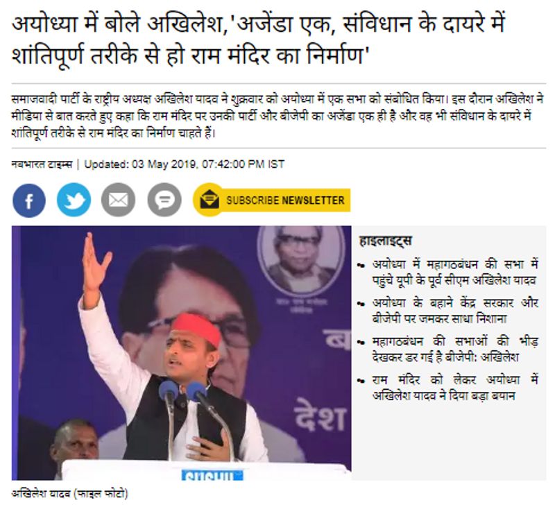 हमें तीन मई 2019 को प्रकाशित एक खबर मिली, जिसमें अखिलेश यादव ने एक चुनावी